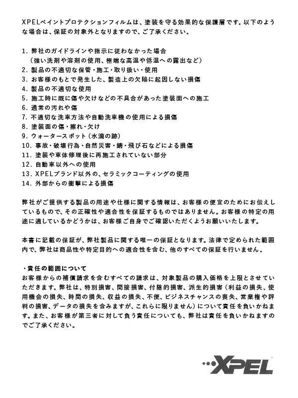 世界No.1ブランドであるXPEL社のプロテクションフィルムは、1996年に米国で創業したナスダック上場企業によって製造され、高級車メーカーの純正オプションにも採用されるなど、その高品質は世界中で認められており、剥がす際の糊残りや塗装へのリスクを抑えながら、XPEL社主体の10年間メーカー保証が受けられます。