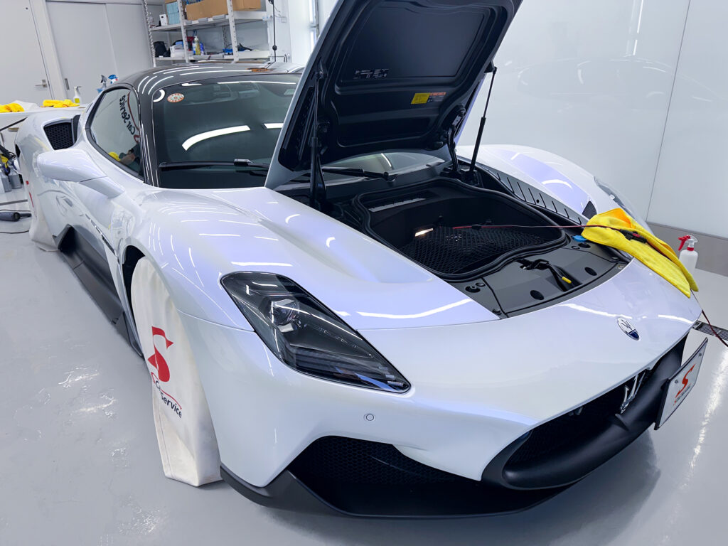 「Corse=Racing」の名はダテじゃない!大胆かつ美麗なスタイリングのマセラティ MC20に、プロテクションフィルムを施工しました♪