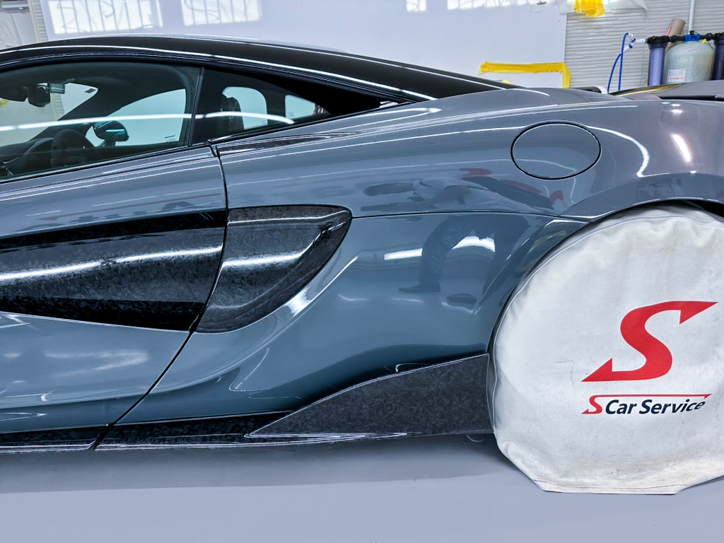 今回は東京23区内から、前回フロントフル施工にてご入庫いただきました、「道路上で本領を発揮する野獣」マクラーレン 600LTのお客様が再びのご入庫。