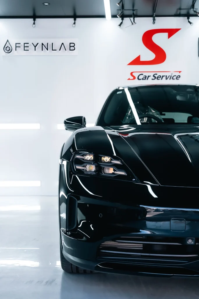 Taycanのフロントフェイスを、より安心して愉しむためのプロテクション施工をご紹介します。