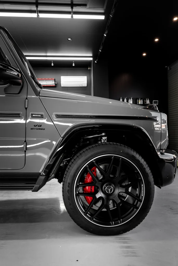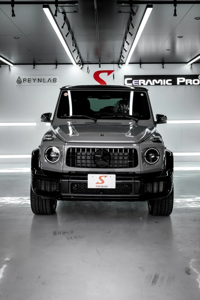 落ち着いたカラーからにじみ出る強さ。メルセデスAMG G63にプロテクションフィルムとセラミックコーティングを施工し、気高い美しさを。