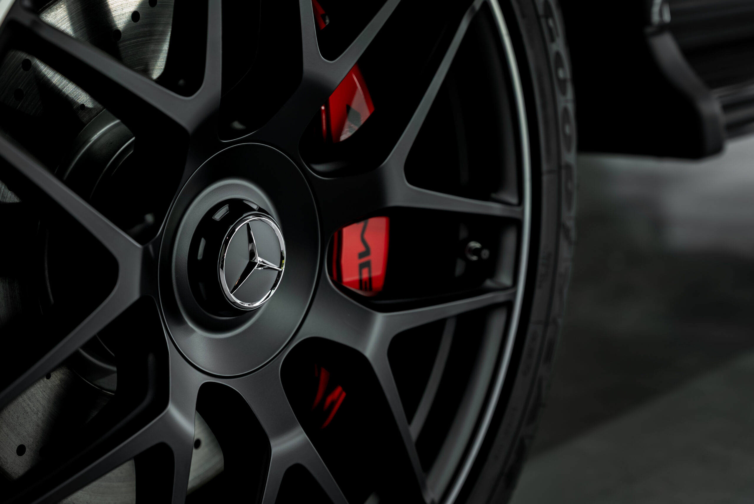 グレーとブラックのコントラストがシックなメルセデスAMG G63。