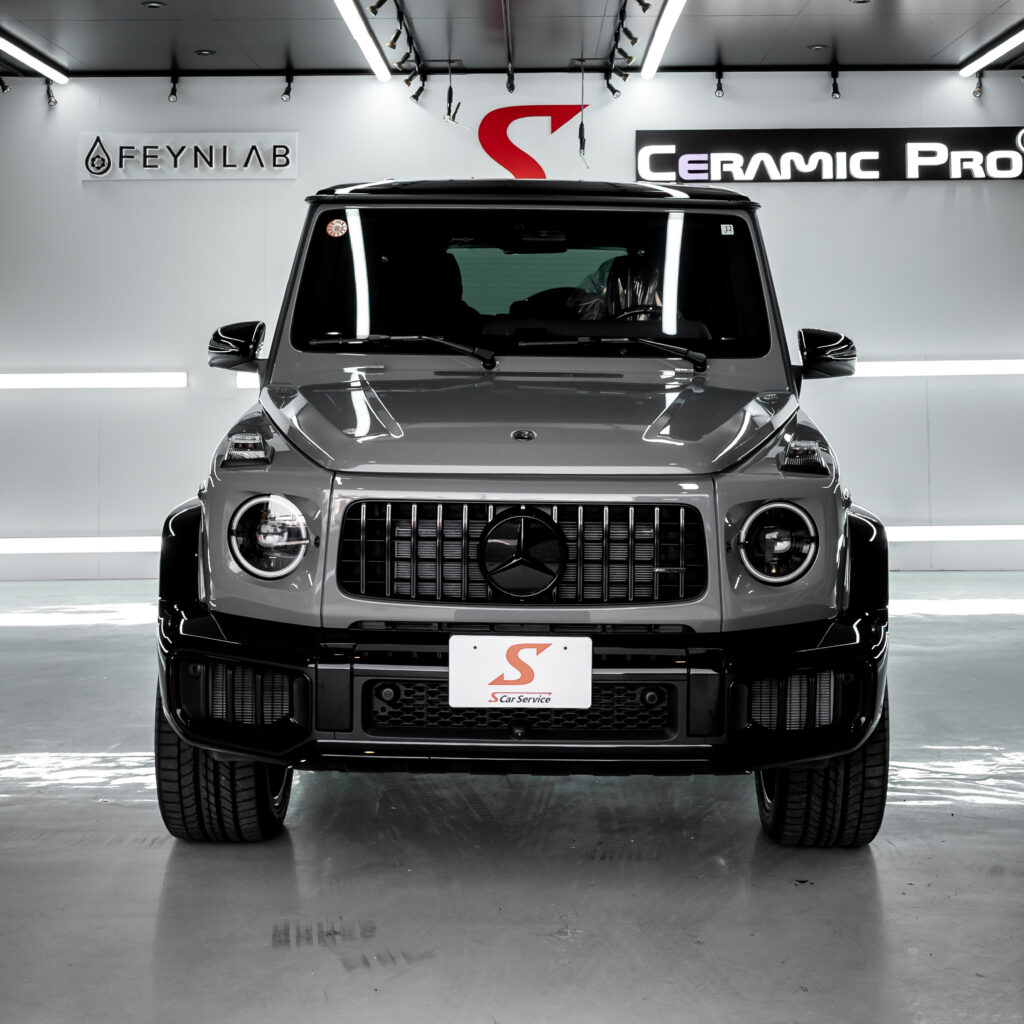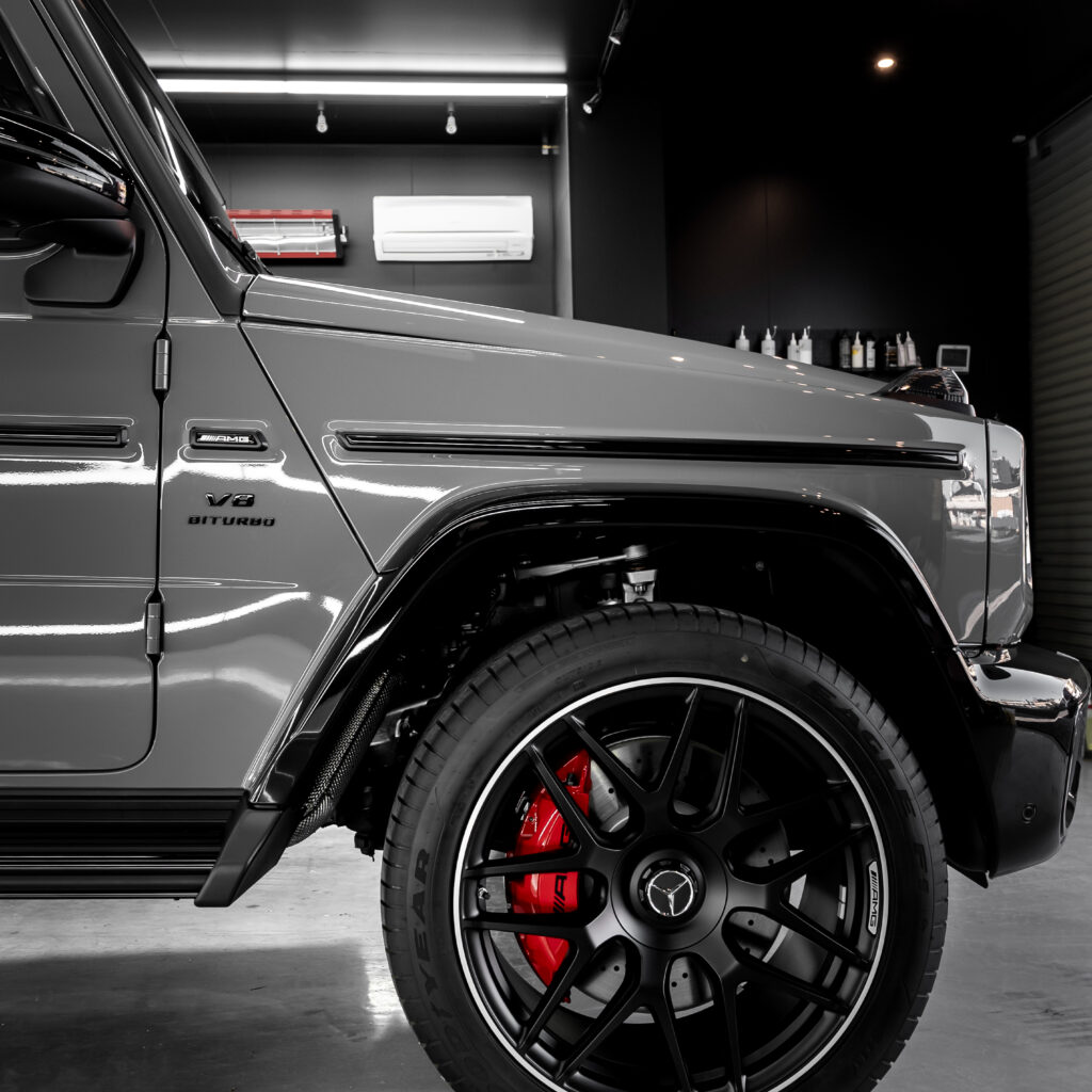 落ち着いたカラーからにじみ出る強さ。メルセデスAMG G63にプロテクションフィルムとセラミックコーティングを施工し、気高い美しさを。
