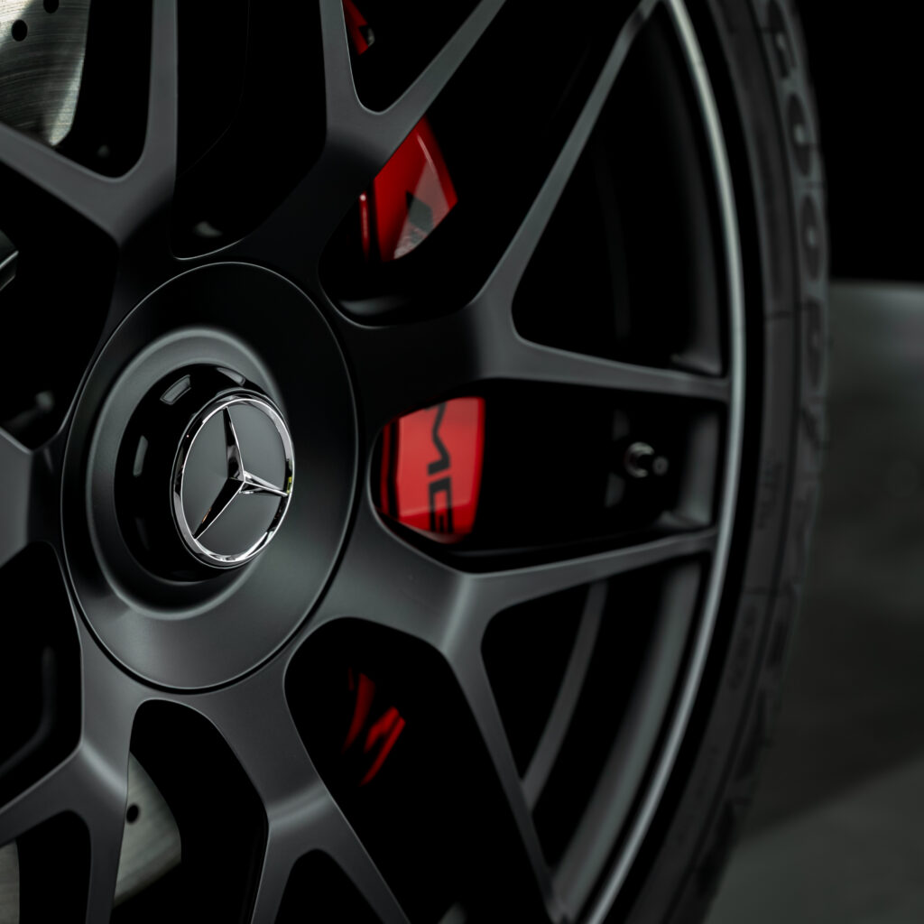 グレーとブラックのコントラストがシックなメルセデスAMG G63。